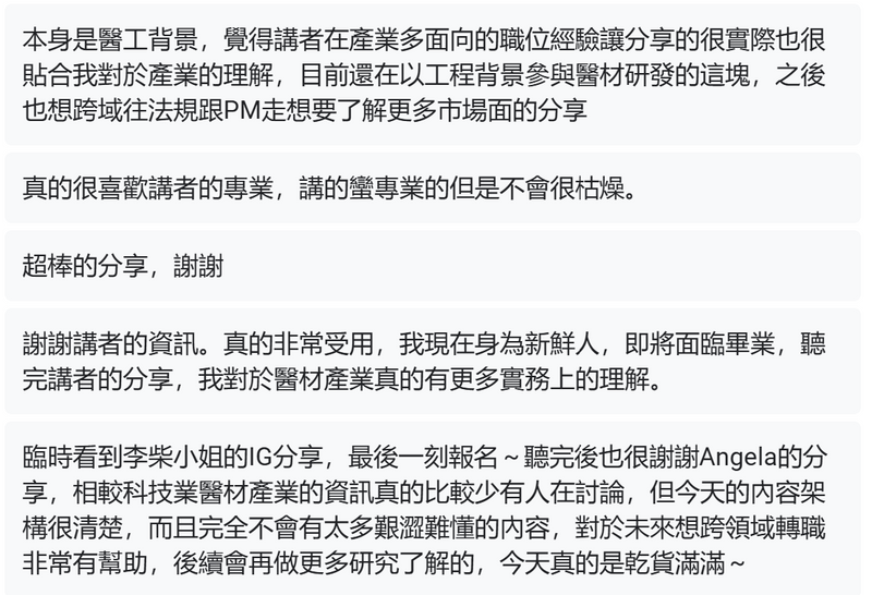 - 醫材資深從業人員,對產業與職涯發展已有明確方向