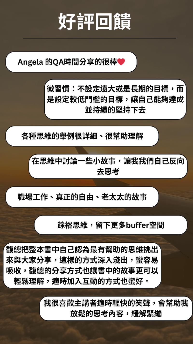 這場讀書會已圓滿落幕,但你的思維升級之路才剛開始!本次講座從《思維進階》中精選出 9 大關鍵思維模型,並結合《執行長思維》、《致富心態》、《隱性潛能》三本重量級著作的啟發,為你打造一套從「大局到細節」的完整決策系統。